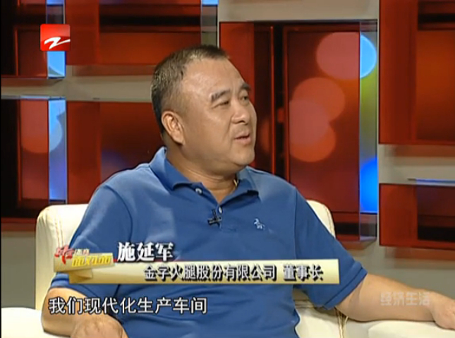 8月23日播出的《風(fēng)云浙商面對(duì)面》收視率迎來一個(gè)新高,這期節(jié)目邀請(qǐng)到了一位特殊的嘉賓——金字火腿股份有限公司董事長施延軍。如何將“浙江三寶“之一的金華火腿產(chǎn)業(yè)做到上市,為何能在風(fēng)靡中國的《舌尖上的中國》紀(jì)錄片中亮相,怎樣將火腿這一產(chǎn)業(yè)做到與歐洲一樣?施延軍董事長在節(jié)目進(jìn)行中向觀眾逐一解答,并首次在電視媒體上回顧了金字20多年的發(fā)展歷程。