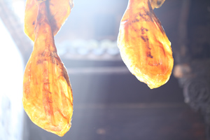 沒有優(yōu)質(zhì)的豬種,就沒有優(yōu)質(zhì)的火腿,這是火腿界質(zhì)樸的真理。許多人都把火腿想當(dāng)然地理解為腌臘肉,事實上,火腿屬于發(fā)酵肉,與葡萄酒、奶酪同屬于發(fā)酵類食品。制作火腿過程中,除了腌制清洗風(fēng)干程序之外,最重要的過程是發(fā)酵熟化。 從火腿生產(chǎn)到最終完成,至少需要一年的時間,如果想得到一支高水準(zhǔn)的火腿,則需要三年的“陳釀”。