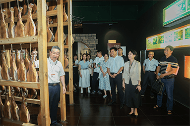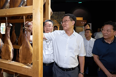 8月22日,金華市委書記朱重烈專程赴金字火腿公司調研金華火腿產業(yè)振興工作。朱書記在公司領導周國華、馬曉鐘、吳月肖陪同下,走進火腿文化展示館和產品展廳。